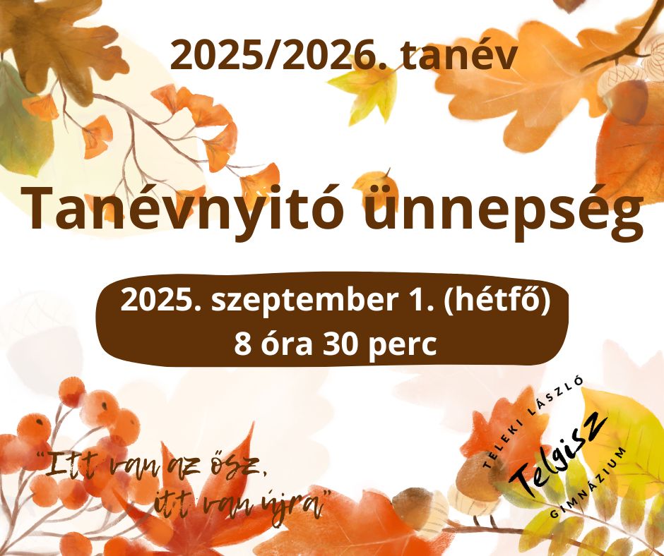 Tanévnyitó ünnepség és első tanítási nap: 2025. szeptember 1. (hétfő) 8 óra 30 perc